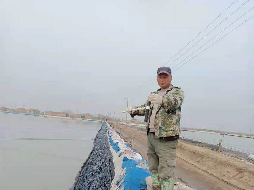 2021年,他服從公司生產(chǎn)機(jī)制的轉(zhuǎn)換,被安排到海濱三組18號灘作為領(lǐng)灘手,負(fù)責(zé)鈣液生產(chǎn)。為了不浪費(fèi)每一毫米的蒸發(fā)量,每天天剛蒙蒙亮,就能看見他在縱橫阡陌的鹽田間穿梭,根據(jù)灘田結(jié)構(gòu)、針對不同季節(jié)確定走水路線,每天重復(fù)著調(diào)節(jié)鈣液、修整溝堰、修補(bǔ)塑布的工作,遇到大雨,他就不回家,守在灘上,及時把鈣液按照不同濃度引進(jìn)鹵臺、鹵窖,雨水結(jié)束,第一時間把灘面淡水排掉,將鈣液回引進(jìn)行晾曬。在生產(chǎn)面積僅有311畝的情況下,他每天要走3萬-4萬步,不僅對他自己的生產(chǎn)單元,對整片鈣液生產(chǎn)單元了如指掌,有多少閘門,多少電線桿,都了然于心。全年下來,生產(chǎn)鈣液28000方,在12個鈣液生產(chǎn)單元中名列前茅,領(lǐng)先超9000方,實(shí)至名歸的生產(chǎn)標(biāo)兵。