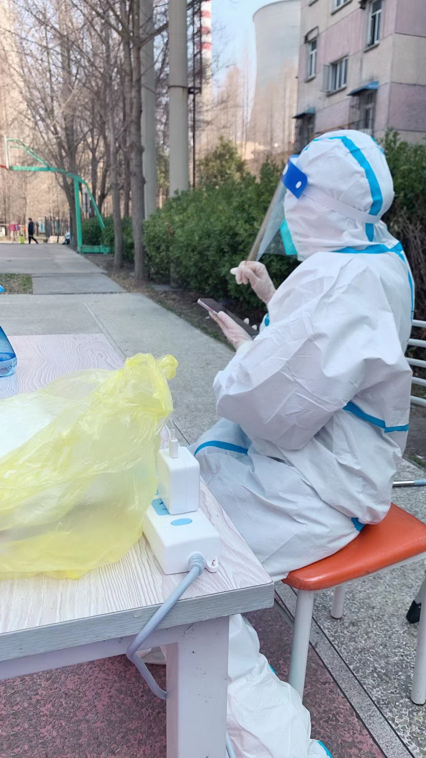 3月8日,臨時(shí)黨支部成立,黨員志愿者們隨即奔赴社區(qū)核酸檢測(cè)現(xiàn)場(chǎng)。當(dāng)天,志愿者們穿上防護(hù)服?!澳愫茫?qǐng)戴好口罩,出示健康碼?!薄澳愫茫@邊人比較少,請(qǐng)往這邊走,保持一米距離?!本S持現(xiàn)場(chǎng)秩序、檢查健康碼、登記核酸個(gè)人信息……志愿者們堅(jiān)守在各自責(zé)任區(qū),細(xì)心、耐心回答居民們的各類(lèi)問(wèn)題,忙得連喝水的時(shí)間都沒(méi)有。細(xì)致周到的服務(wù)、無(wú)私的奉獻(xiàn)精神,得到了社區(qū)居民們的一致認(rèn)可和贊揚(yáng)。