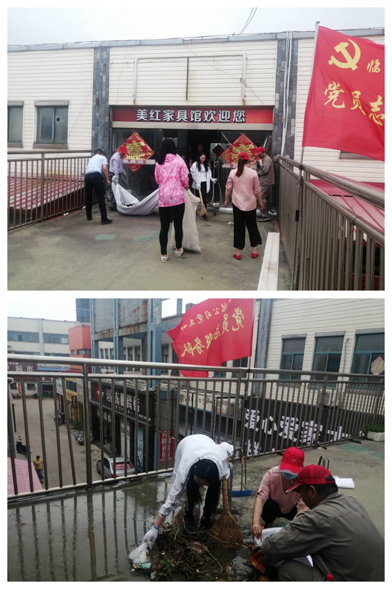 圍繞臨達(dá)公司資產(chǎn)經(jīng)營業(yè)務(wù),7月21日,臨達(dá)黨支部組織開展“黨員奉獻(xiàn)日”活動,志愿服務(wù)隊(duì)到光伸家具市場,對過道、門前的環(huán)境衛(wèi)生進(jìn)行了清掃。通過活動開展,與商戶對營造良好經(jīng)營氛圍形成共識,共同打造干凈、整潔、舒適的營商環(huán)境,提升臨達(dá)公司形象,促進(jìn)公司與商戶的和諧關(guān)系,形成人人參與、齊抓共管的良好氛圍。