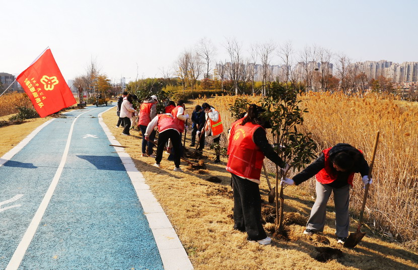 ? ? 都說女人能頂半邊天,不僅在工作上獨當(dāng)一面,掄起鐵锨來也有“女漢子”的風(fēng)采。在植樹活動中,女職工們齊心協(xié)力,有的搬運樹苗、有的挖坑育樹、有的培土澆水,大大小小百余棵樹木很快就玉立在昌圩湖公園健康小路兩側(cè),為昌圩湖公園增添了一份綠意。