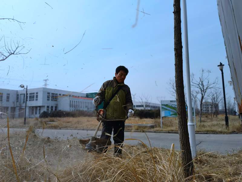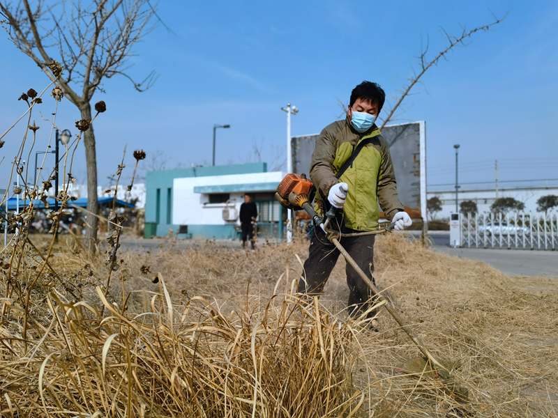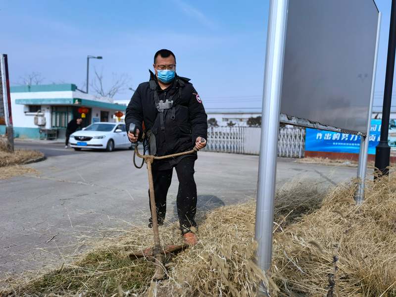 經(jīng)驗老道的“除草匠人”朱春華一馬當(dāng)先,一人成軍,小小雜草在揮舞的打草機(jī)下“灰飛煙滅”