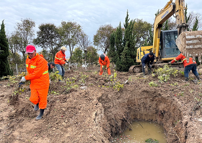初晨微風(fēng)習(xí)習(xí)、陽(yáng)光輕灑。綠化班組在班長(zhǎng)楊茹明帶領(lǐng)下早早的就到達(dá)了作業(yè)地帶,挖掘機(jī)將石楠和黃楊等一些苗木進(jìn)行松土挖起,放入三輪車(chē)中轉(zhuǎn)移至云港路空缺綠化路段,云港路上綠化工人你一撬我一栽,將轉(zhuǎn)移來(lái)的苗木進(jìn)行輕微修剪然后種植下去。